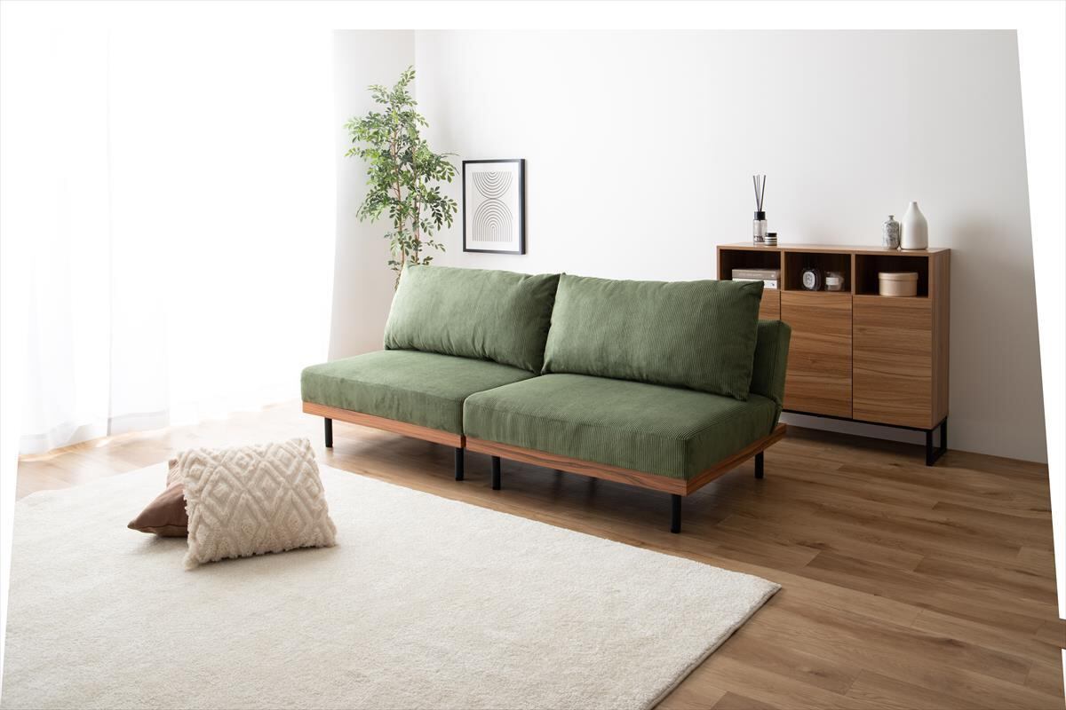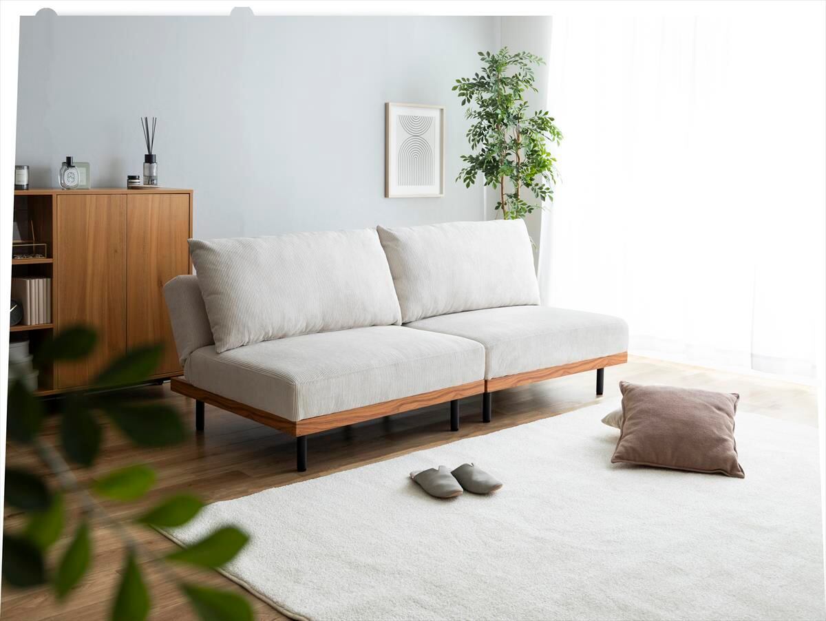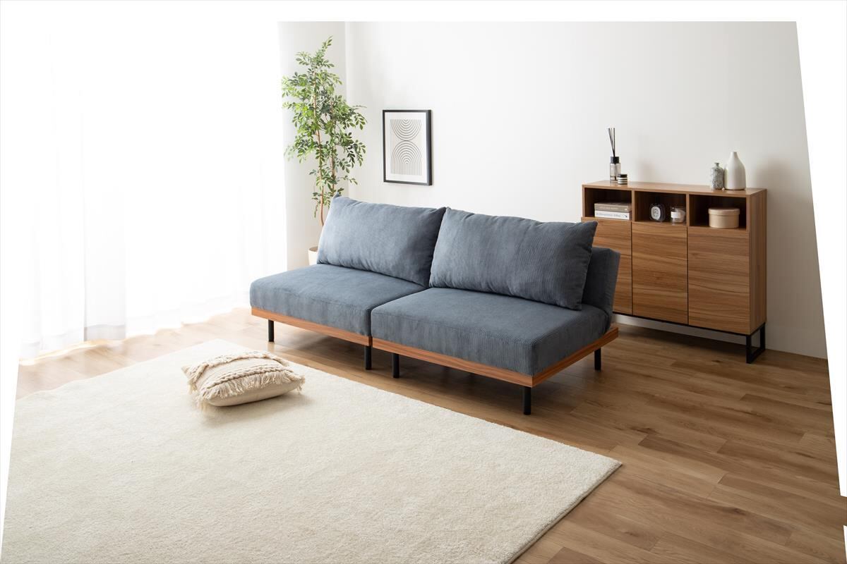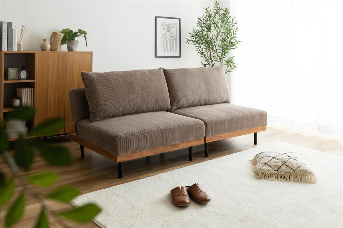 木のぬくもりとやわらかな座り心地が魅力の、180cm幅2人掛けコーデュロイソファ。