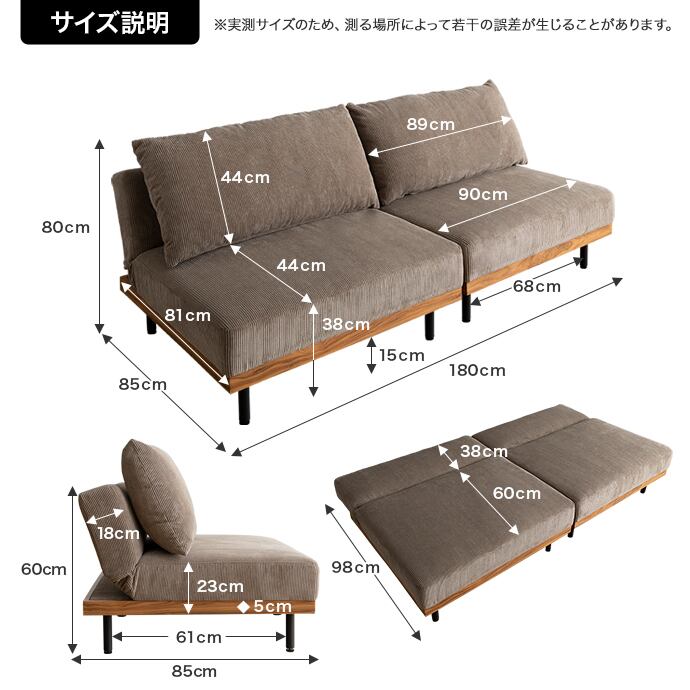 幅180cm(90cm+90cm)×奥行98cm×高さ80cm(座面高:38cm)