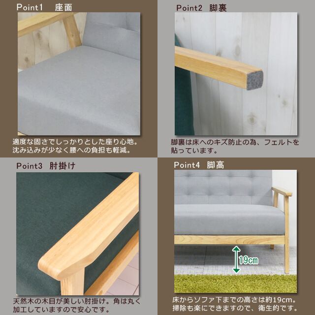 ●床からソファまでの高さは約19cmです。掃除も楽にできますので衛生的です。
