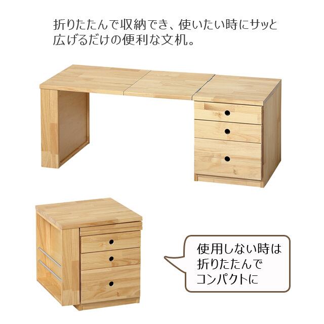 折りたたみ収納デスク〈3段チェスト一体型〉