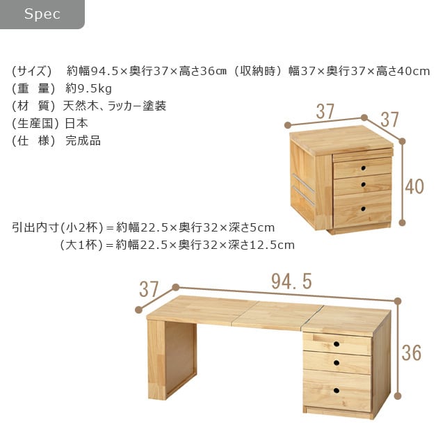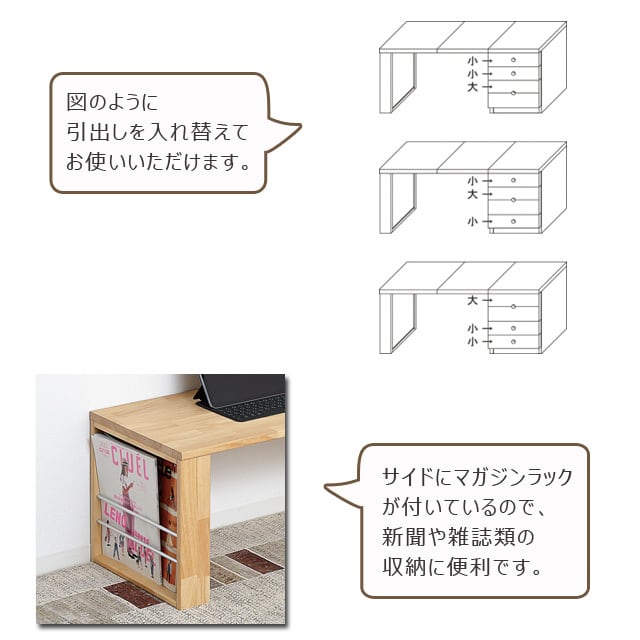 さらに、3段の引き出し付きチェストが一体となっているため、文具や書類、小物類もまとめて収納可能。