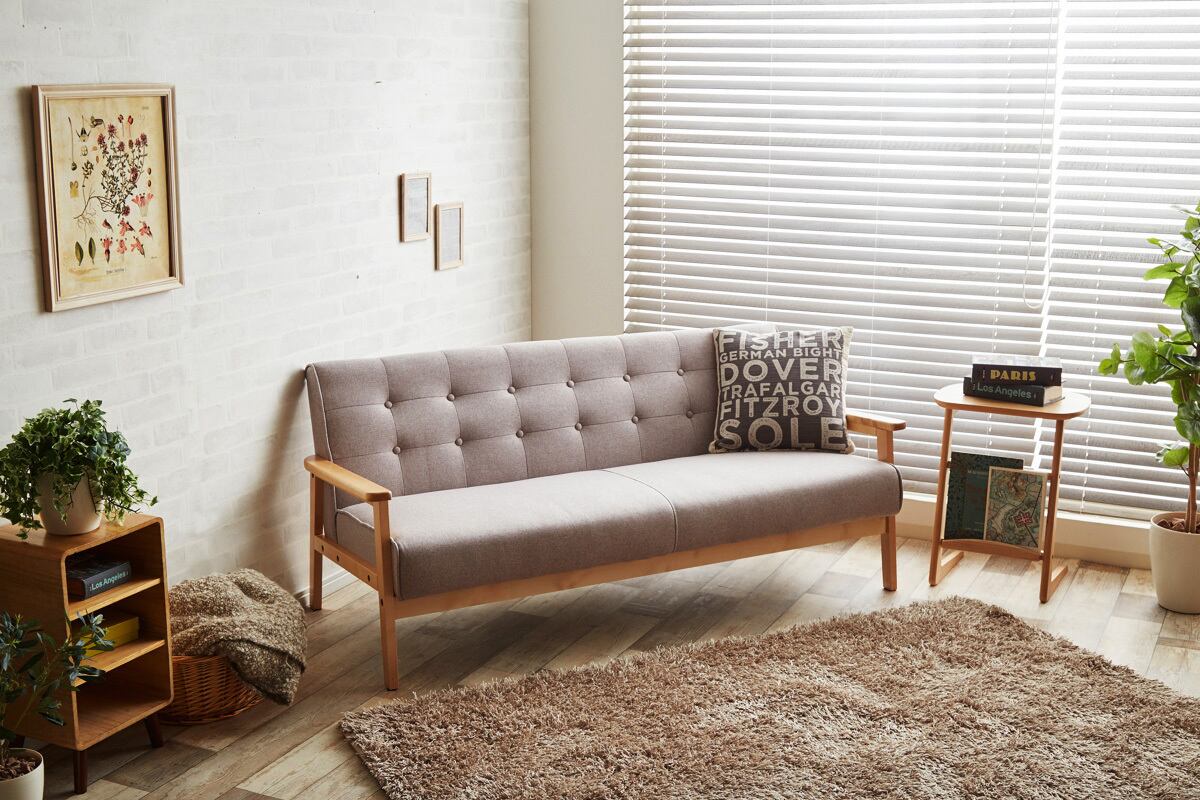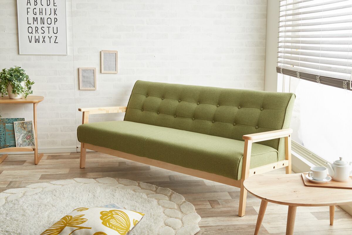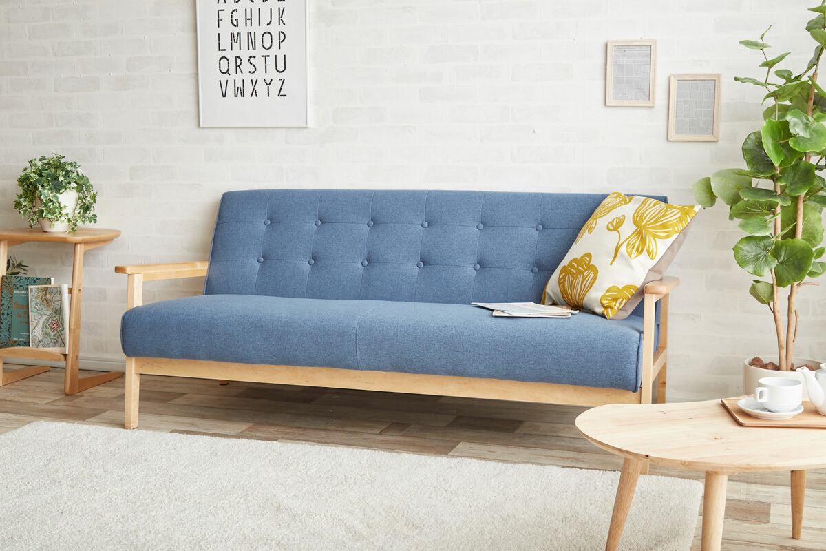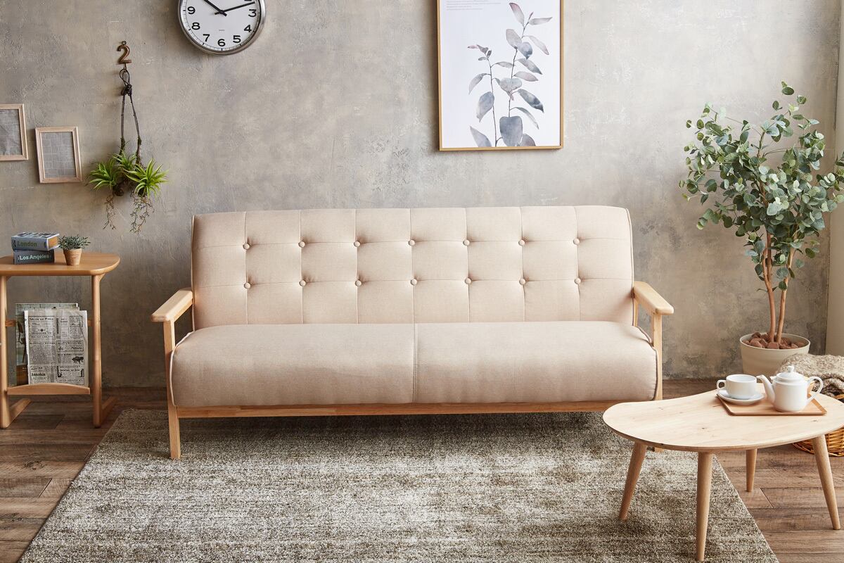 脚付きデザインで床との間に空間があるため、お掃除がしやすく衛生的。リビングの主役としてはもちろん、オフィスの待合スペースやカフェ風の空間演出にも最適な一台です。