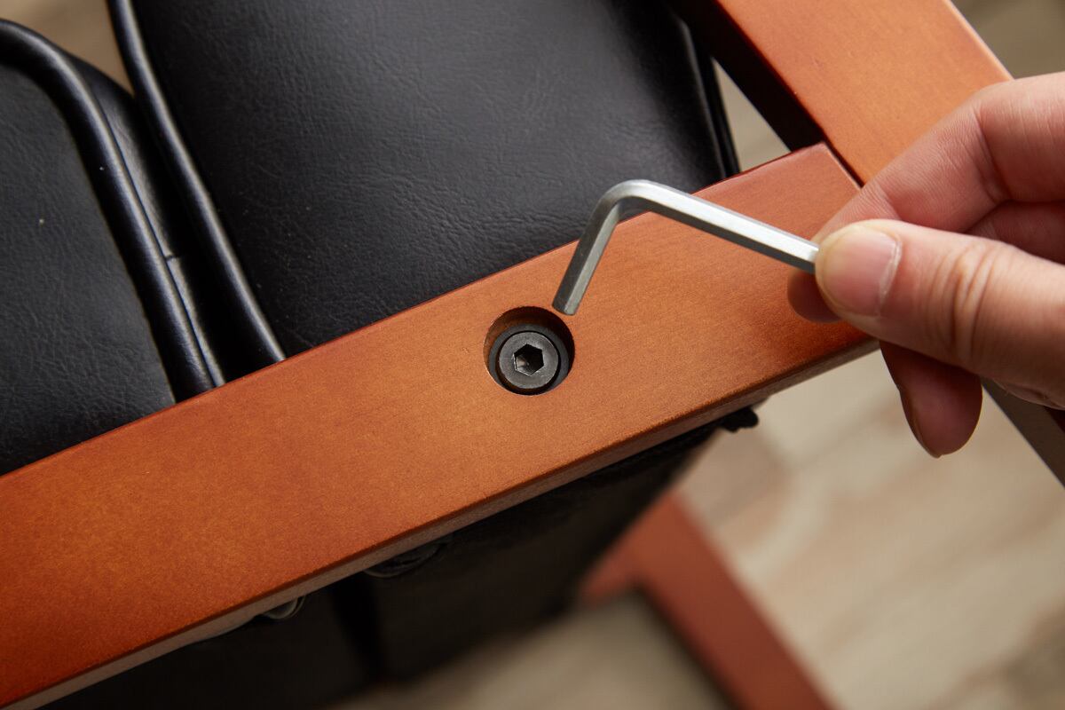 木製フレームとアームの深みあるブラウンカラーは、温もりを感じさせるアクセントとなり、インダストリアルやミッドセンチュリー、北欧テイストのインテリアとも相性抜群です。